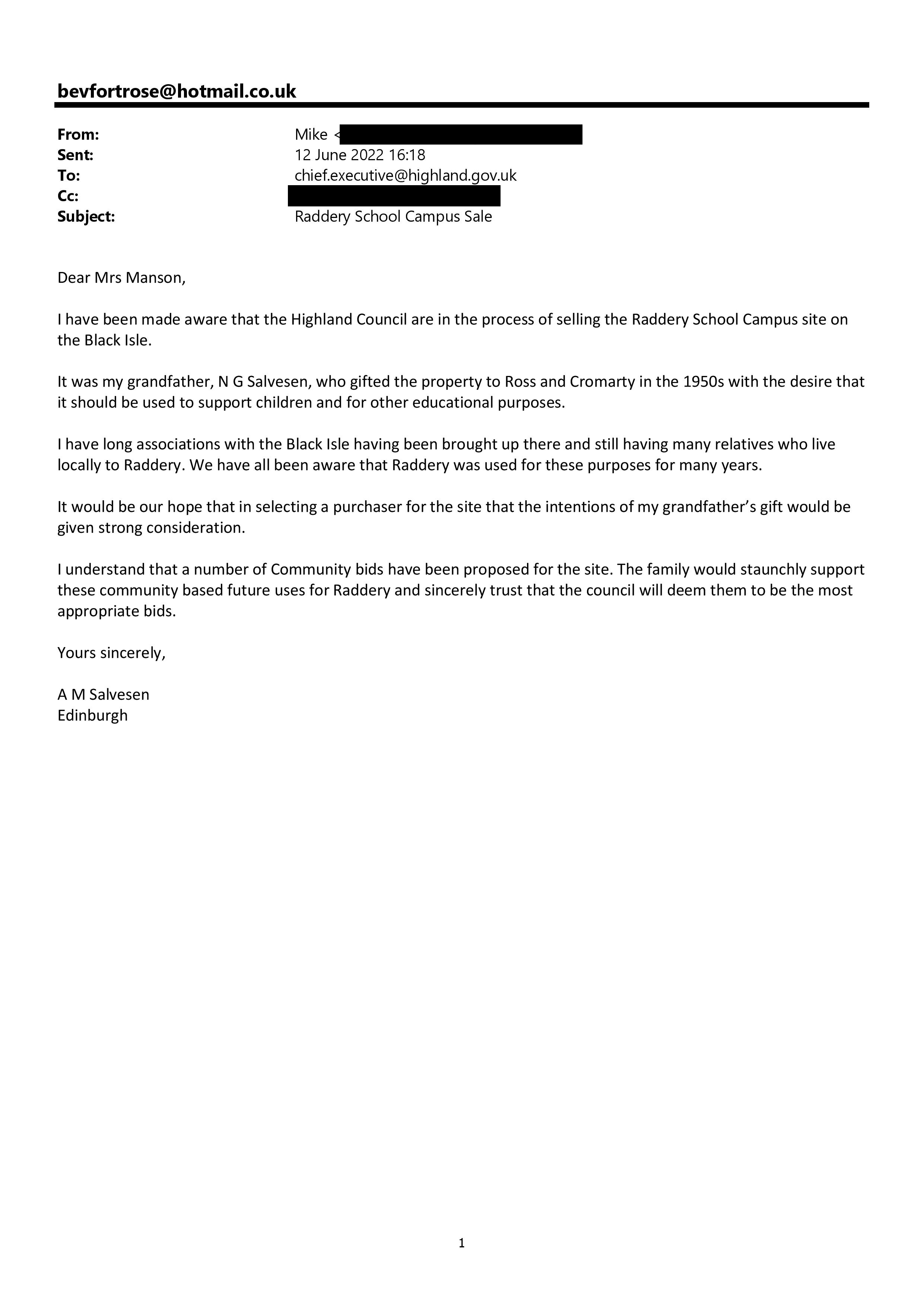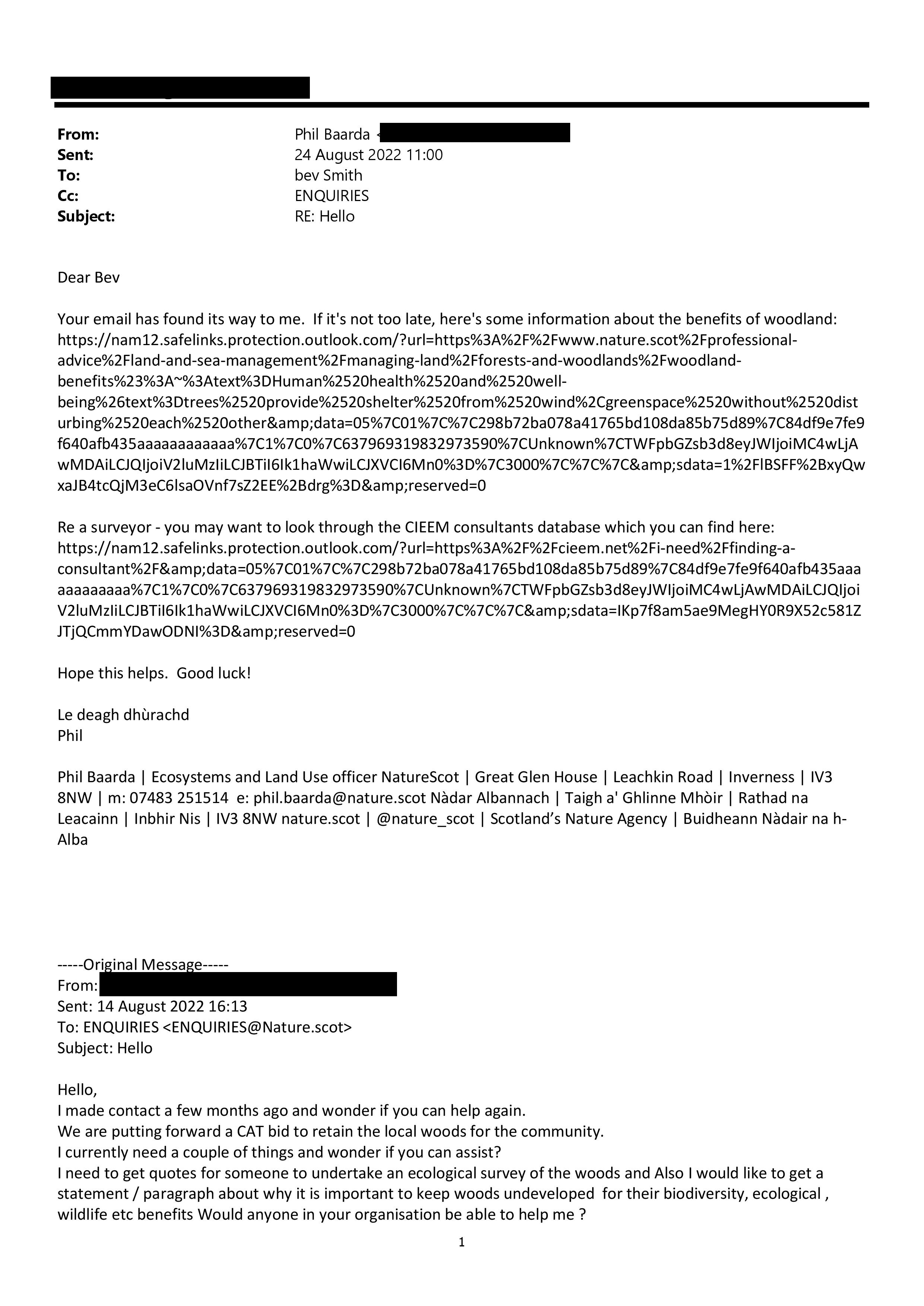 Documents relating to a Community Asset Transfer Request for Former Black Isle Education Centre, including Raddery Woodland